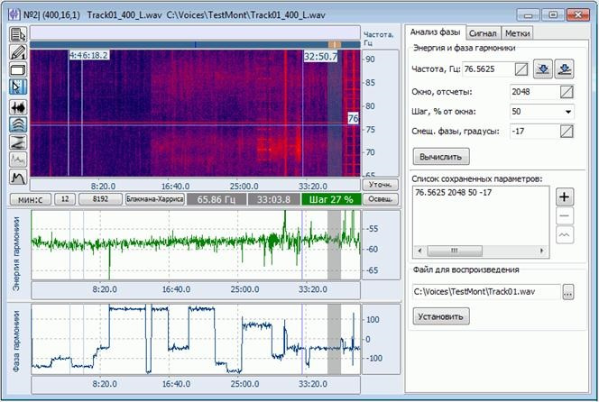 Инструментальная часть исследования направлена на анализ физических характеристик фонограммы. В рамках инструментальной части исследования проводится анализ формы и частотного состава сигнала фонограммы, выявление и оценка следов работы различных устройств, участвующих в процессе преобразования, трансляции и записи звукового сигнала (т.е. в процессе производства фонограммы) и последующем влиянии части указанных устройств на записанный сигнал. К признакам изменений фонограммы (выполненных электронным аналоговым и электронным цифровым путём), выявляемых в ходе инструментальной части исследования носителя записи и сигнала фонограммы, относятся следующие следы: